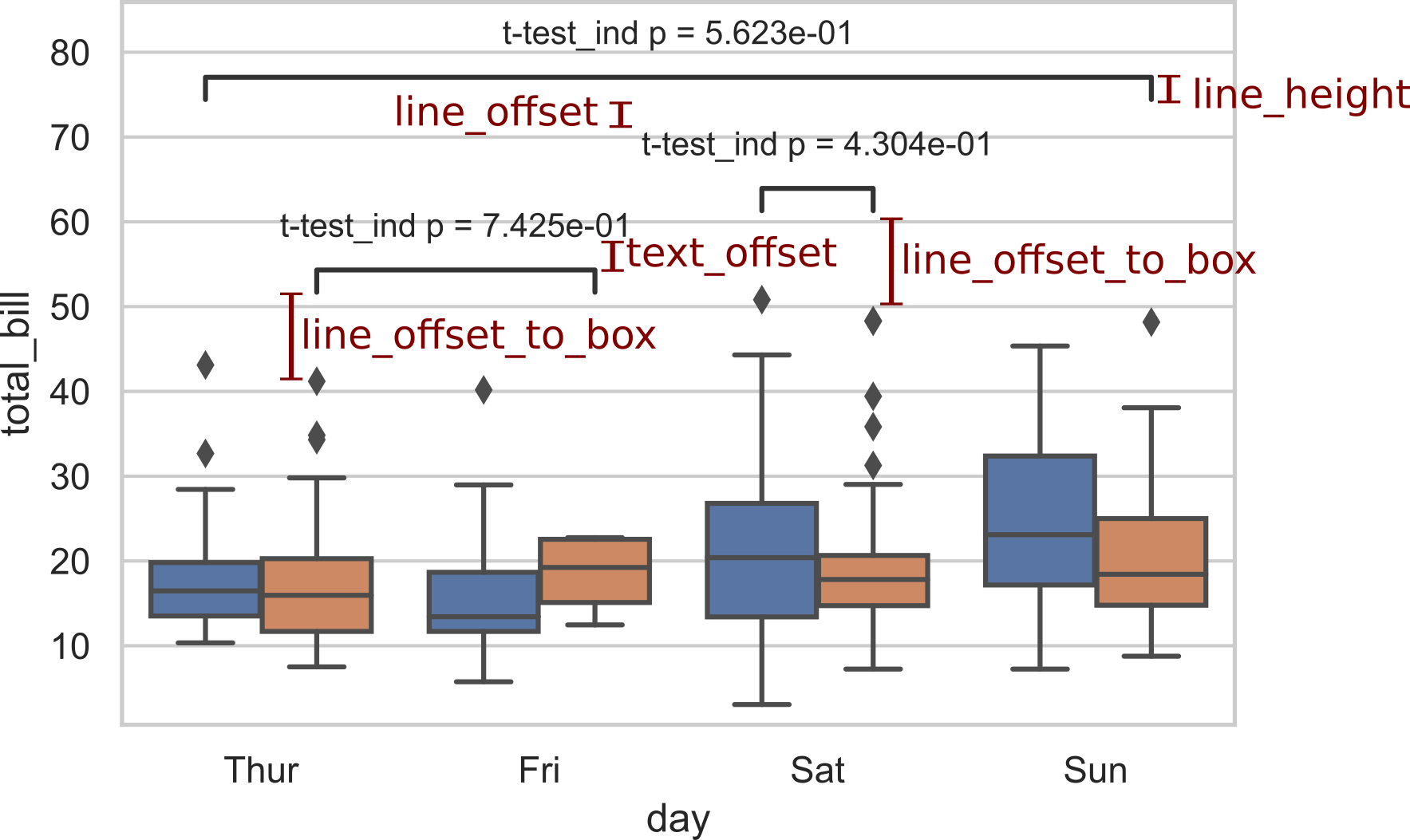 Tips: sns.plot的data, x, y, order等绘图参数需要与Annotator的保持一致。