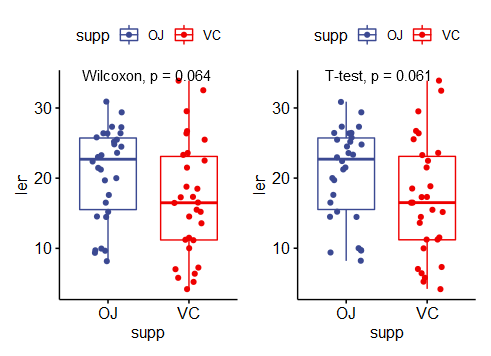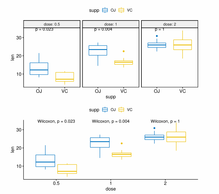 ggpubr包提供了组间比较的分析函数与可视化函数,主要参考自http://www.sthda.com/english/articles/24-ggpubr-publication-ready-plots/76-add-p-values-and-significance-levels-to-ggplots/