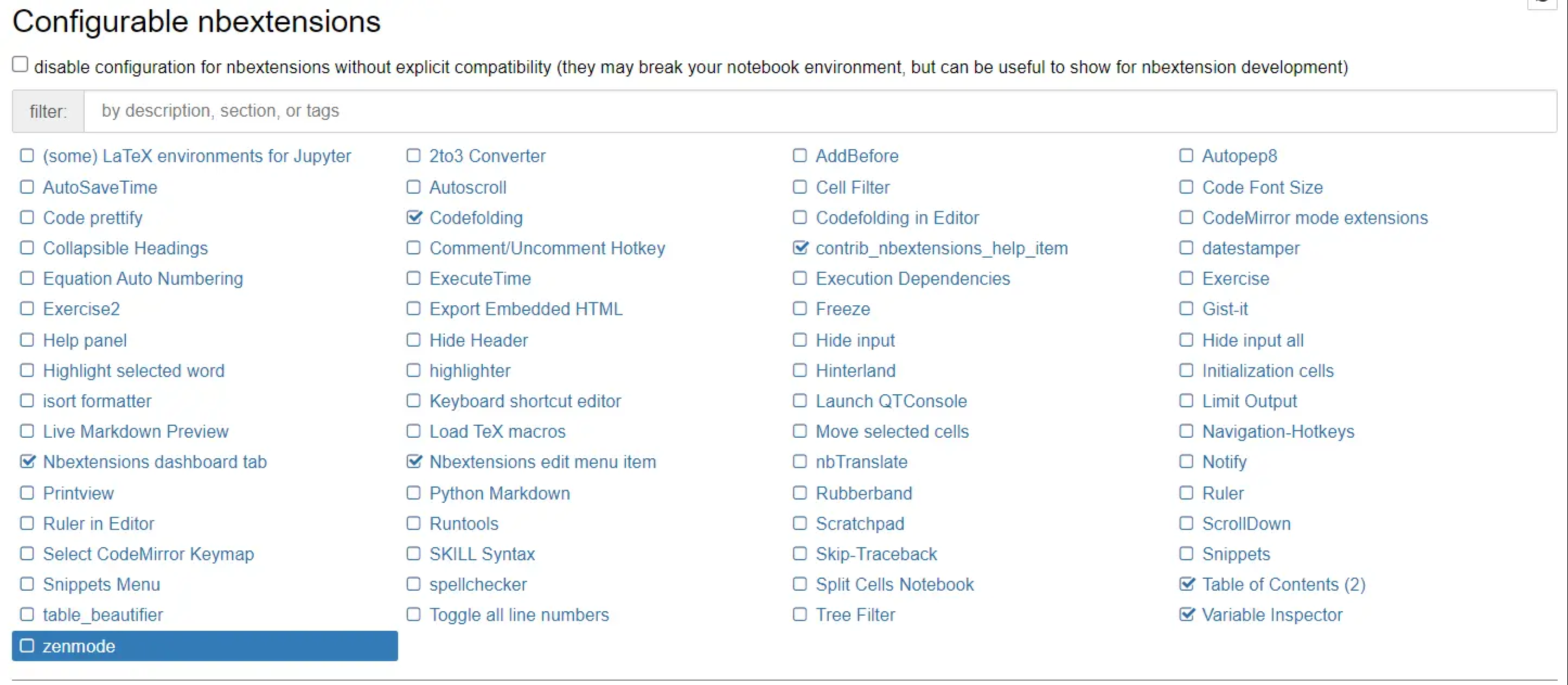 jupyter-contrib-nbextensions提供了很多jupyter的插件,其中有些还是非常实用的。